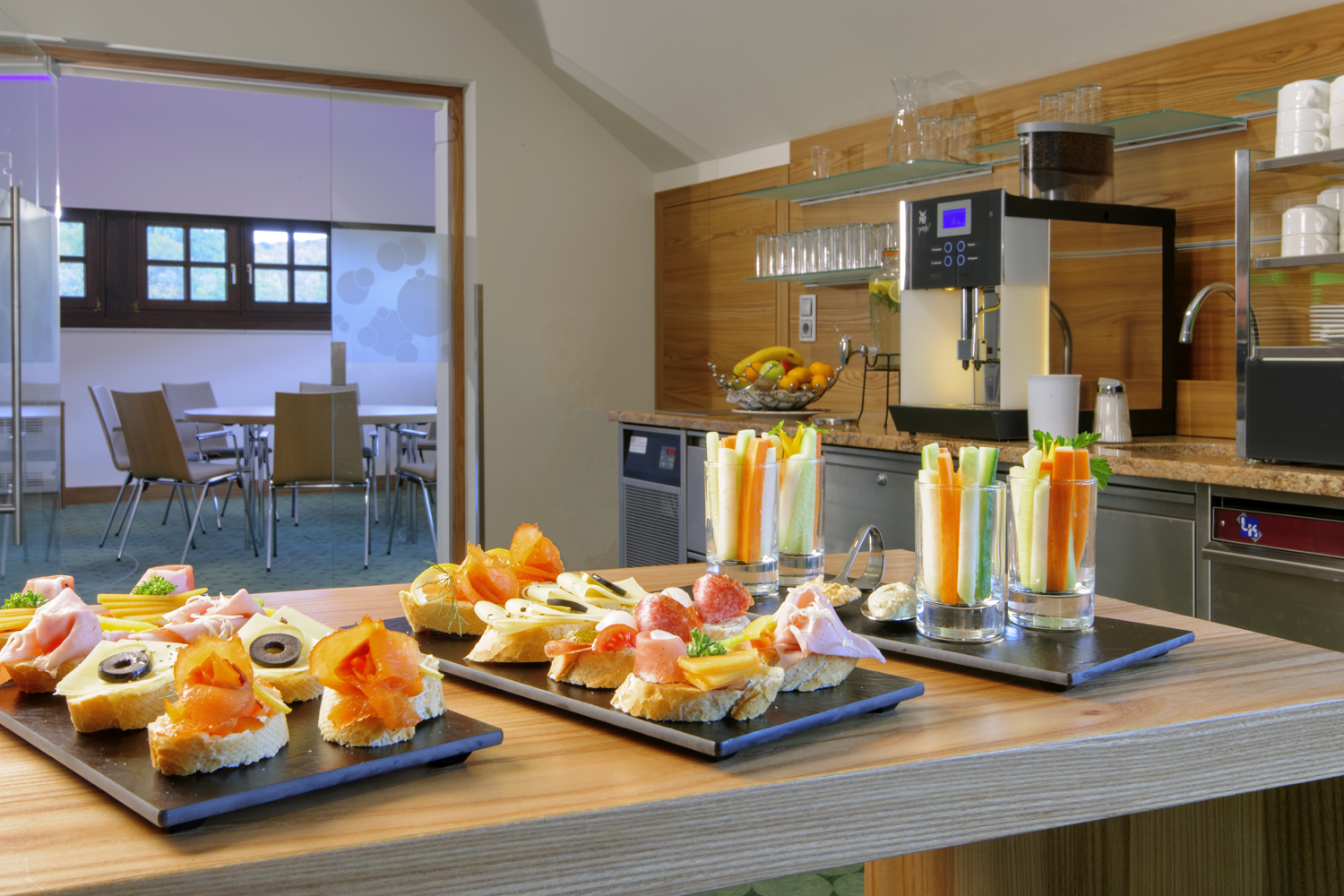 - Unlimitiertes Tafelwasser prickelnd / still im Tagungsraum